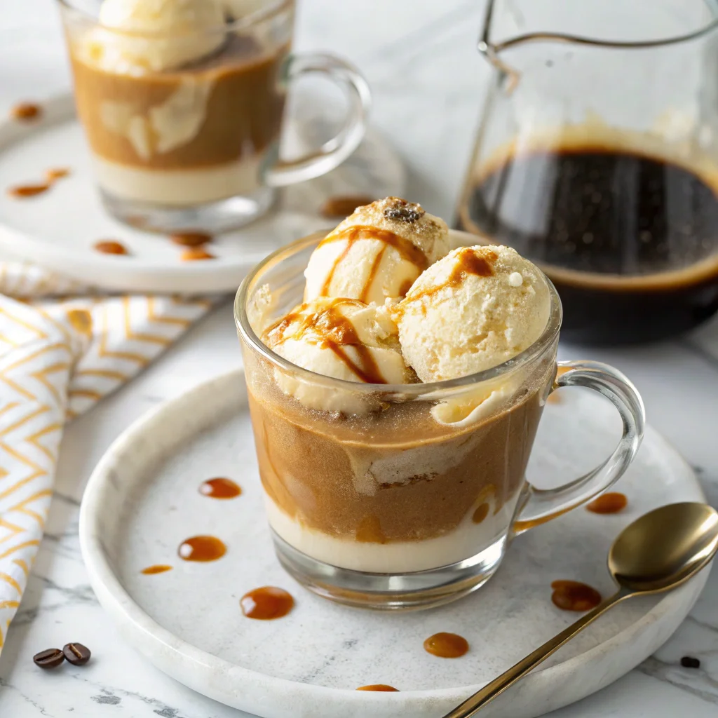 Dark roasted coffee blend poured over smooth vanilla ice cream. A perfectly balanced blend of warm and cold in every spoonful.